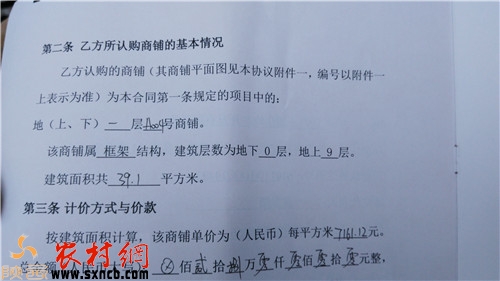7月6日上午,在武功農(nóng)貿(mào)市場(chǎng)在建項(xiàng)目工地上,記者見(jiàn)到了幾十名在這里購(gòu)買商鋪的群眾,據(jù)他們介紹,這個(gè)農(nóng)貿(mào)市場(chǎng)由陜西正耀房地產(chǎn)開發(fā)有限公司開發(fā)承建,從2012年開始動(dòng)工建設(shè),因?yàn)榻ㄔO(shè)規(guī)模大、規(guī)劃比較合理,也同時(shí)是縣上確定的招商引資項(xiàng)目,因此吸引了不少投資者前來(lái)購(gòu)買商鋪。從2013年11月份開始到2014年年初,這里的商鋪幾乎銷售一空。按照合同約定,這些商鋪都必須全款一次性付清,并且合同標(biāo)明,2014年6月份為交房期限,商鋪的運(yùn)營(yíng)方式按照約定采取前三年由開發(fā)商統(tǒng)一經(jīng)營(yíng)、按照不同的標(biāo)準(zhǔn)對(duì)購(gòu)買商鋪者進(jìn)行租金每年10%不等的利潤(rùn)返還。準(zhǔn)商戶們說(shuō),繳納了全款,拿到了合同,大伙兒都安心等待一年之后的租金返還,可到了2014年年底,卻遲遲沒(méi)有接到開發(fā)商關(guān)于租金的發(fā)放消息,等大家跑到項(xiàng)目部詢問(wèn)時(shí),一個(gè)讓他們?cè)趺匆蚕氩坏降膯?wèn)題出現(xiàn)了。