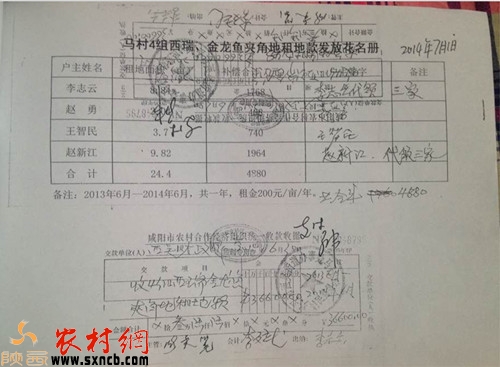 馬村4組西瑞、金龍魚(yú)夾角地租地款收據(jù)