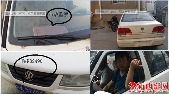 我們來到橫山縣政府大門口,一輛標(biāo)識“創(chuàng)建稽查”的車輛進(jìn)入我們的視線,只見該車車頂安裝警燈,車身模糊的可以看到噴有“創(chuàng)建省級園林城市”字樣,該車車牌號為“陜K13719”,群眾怎會想到執(zhí)法車竟是套牌車。通過查詢,此號牌原所有人系“橫山縣橫山鎮(zhèn)小河灘胡某”,該車從2010年11月26日至2015年4月23日共有5條違章。