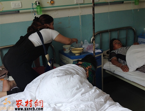 中午12點左右,記者在橫山縣人民醫(yī)院見到了住院的患者,均在進行吸氧和輸液治療。據(jù)記者從患者中了解,現(xiàn)有住院村民10名,均為婦女。