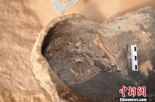 雙鋬鬲中的骨殖上殘留的織物殘片陜西考古研究院攝