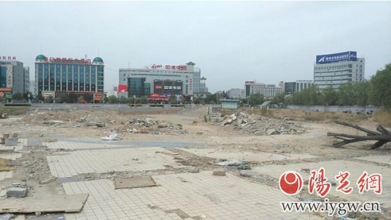 記者走進(jìn)如今正在改造的凌霄廣場時,映入眼簾的卻是一片廢墟,整個廣場全是拆除后留下的建筑材料,廣場上沒有任何工作人員,廣場外圍圈起高高的圍墻,改造工程大門緊鎖。