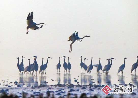通過(guò)查閱相關(guān)文獻(xiàn)和實(shí)地調(diào)查,中科院昆明動(dòng)物研究所楊曉君研究員和高級(jí)工程師常云艷發(fā)現(xiàn),云南為我國(guó)記錄鶴類最多的省份,截至2014年12月1日,共記錄有鶴類2屬7種,分別為中國(guó)記錄2屬9種鶴類的100%及77.8%,僅沙丘鶴和白枕鶴在云南省沒(méi)有記錄。