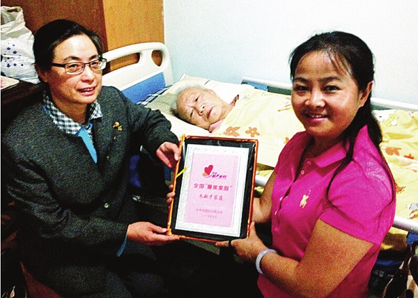 貴州省婦聯(lián)副主席楊玲在北京參加全國最美家庭頒獎儀式后,來到兩位老人的家里,看到朱敏才雖然還不能說話,但精神狀態(tài)非常好。