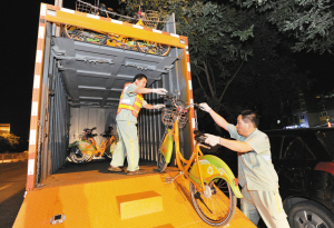 已經(jīng)有8個月工作經(jīng)驗的周京朝師傅表示,白天道路交通壓力大,調(diào)運能力有限,而晚上行車通暢,調(diào)運效率是白天的兩倍,而且9點自行車停止服務(wù)后,數(shù)量不會有太大變化,集中調(diào)運也比較方便。