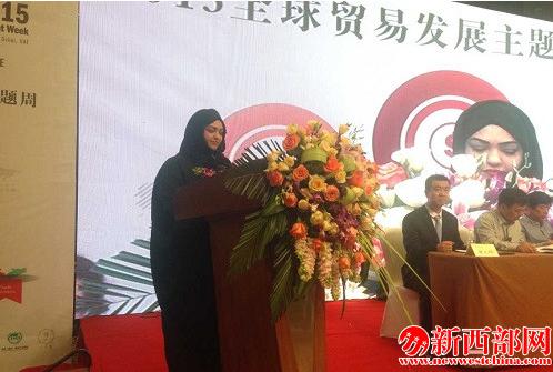 阿聯(lián)酋經(jīng)濟(jì)部國際貿(mào)易司司長阿伊莎? 阿勒? 寇拜斯女士發(fā)言
