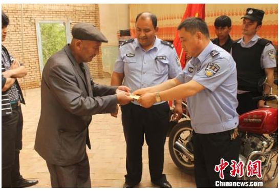 民警叮囑庫爾班大叔在1000多公里的征程中一定要注意安全、一路平安,隨后送上了慰問金。