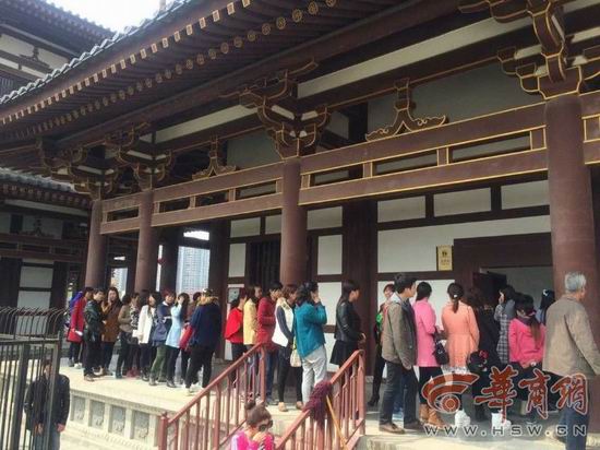 今年4月 西安青龍寺景區(qū)內(nèi) 女士排隊(duì)等著上廁所