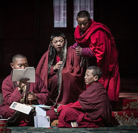 僧人們正伏在刺花的地毯上學(xué)習(xí)課程。這里的佛學(xué)院對外開放,歡迎游客們參加到學(xué)習(xí)之中,一覽僧人們的日常。(來自:騰訊新聞編譯)