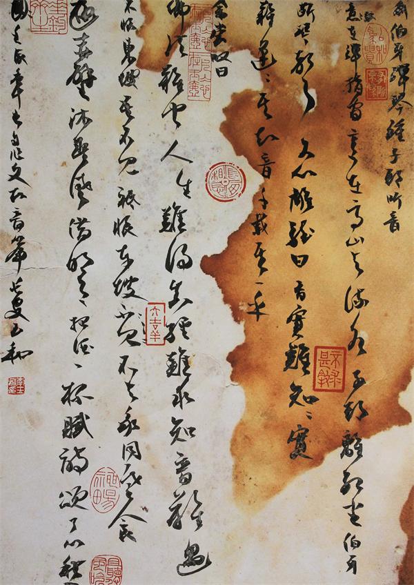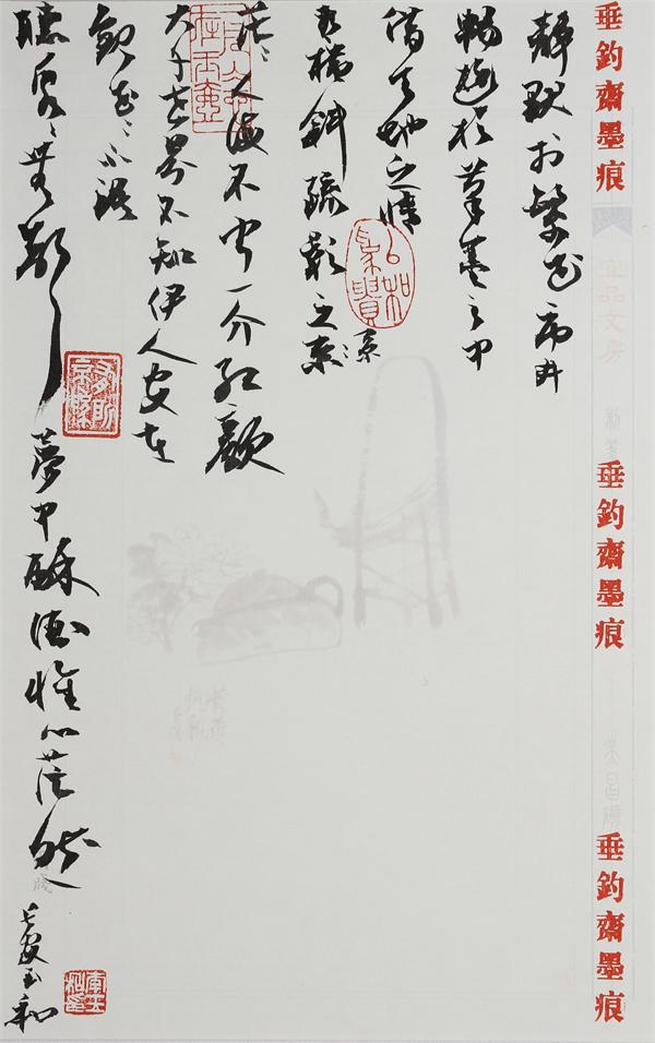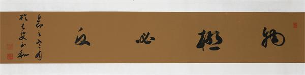 他沉緬于書(shū)法情趣之中又能夠自拔。力圖在這個(gè)領(lǐng)域有所探索,多少搞出一點(diǎn)自己的名堂,如內(nèi)容、布局、色彩上創(chuàng)新的想法,卻不悖于法理。由于他堅(jiān)執(zhí)以書(shū)法來(lái)書(shū)寫(xiě)自己的心跡與追求,可能沒(méi)有通常書(shū)家的市場(chǎng)效應(yīng),卻在曲高和寡中保持了藝術(shù)的矜持。