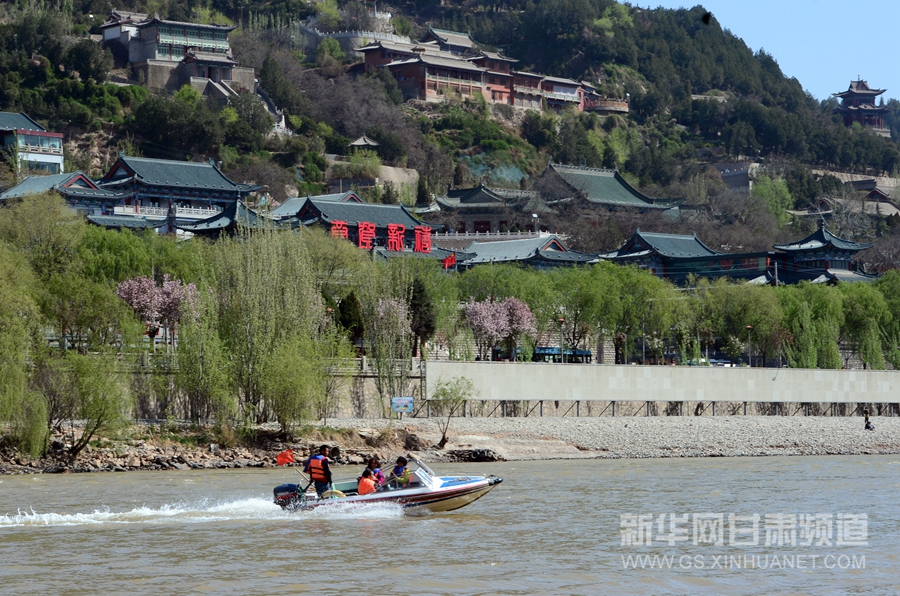 4月13日,在蘭州百里黃河風情線,一艘快艇在黃河上航行。甘肅省依托“一帶一路”建設(shè),出臺《甘肅絲綢之路經(jīng)濟帶建設(shè)大景區(qū)總體規(guī)劃綱要》,計劃到2020年建成20個年接待游客300萬人次以上的大景區(qū),形成精品絲路線、黃河風情線、華夏尋根線、民族風情線、中醫(yī)藥養(yǎng)生線、紅色旅游線等6條主題品牌線路。新華社記者范培珅攝