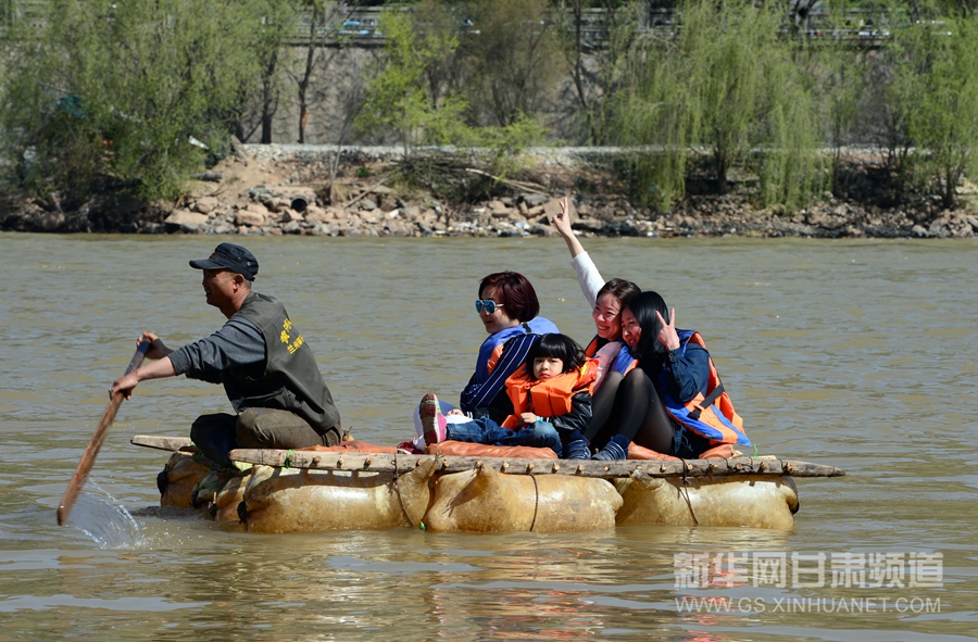 4月13日,游客在蘭州百里黃河風情線景區(qū)內(nèi)乘坐羊皮筏子。甘肅省依托“一帶一路”建設(shè),出臺《甘肅絲綢之路經(jīng)濟帶建設(shè)大景區(qū)總體規(guī)劃綱要》,計劃到2020年建成20個年接待游客300萬人次以上的大景區(qū),形成精品絲路線、黃河風情線、華夏尋根線、民族風情線、中醫(yī)藥養(yǎng)生線、紅色旅游線等6條主題品牌線路。新華社記者范培珅攝