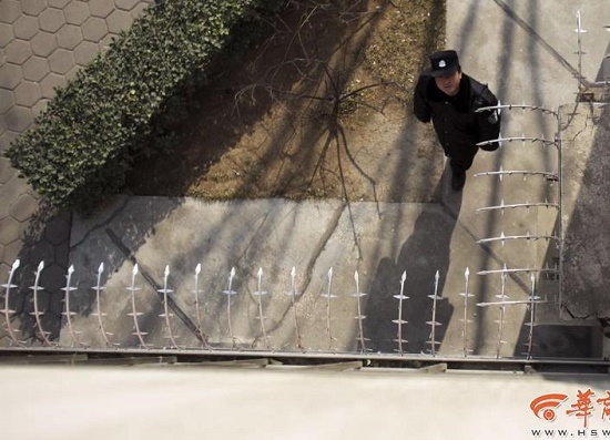 “廠家做好后整改了好幾次,把刺的排列改得更密,外形更美觀?!毕蜍娬f(shuō), “防爬刺”上的刺很尖銳,一抓就受傷,能有效防小偷。