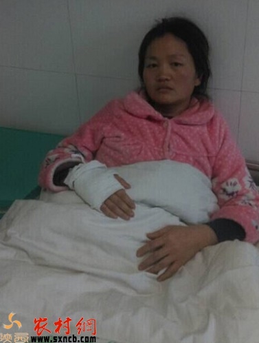 1月7日,在橫山縣醫(yī)院六樓骨科住院部,記者見到了躺在病床上的安玲玲。安玲玲告訴記者:“我家是橫山縣韓岔人,在縣城沒有工作,就想冬季了批發(fā)一些圍巾擺地?cái)倎碣u以維持家用,2014年12月17日下午四點(diǎn)多,我在縣城百貨大樓門前擺地?cái)傎u圍巾時(shí),突然來了五六個(gè)人,身著便服,二話不說就把我賣的圍巾搶走放在車上就走,我上前理論時(shí)他們說這里不能賣東西,我當(dāng)時(shí)說我是第一次擺攤賣東西,不知道這里不讓賣,你把圍巾給我,我以后不在這里賣東西了,我往回拉扯我的圍巾時(shí),我的右手無名指的手背被一個(gè)人扳斷了,手指當(dāng)時(shí)就掉開了,110警察來之后才勸解開,這時(shí)才知道是橫山縣市容市貌管理所的五六個(gè)人,扳斷我手指的是橫山縣市容市貌管理所的干部楊宏奇?!?/p>