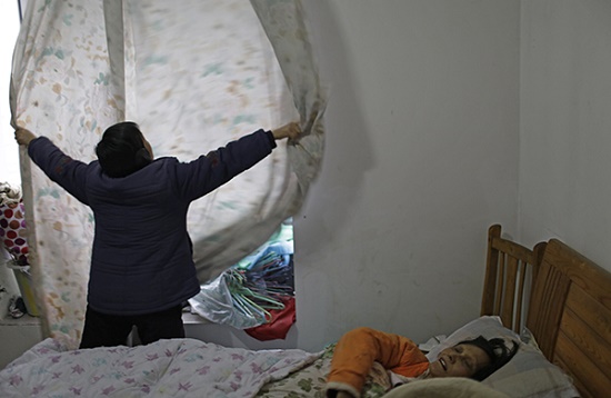 由于沒有經(jīng)濟來源,原沙坪壩區(qū)聯(lián)芳村的一些居民生活凄苦。57歲的李澤秀躺在床上,她生病了沒有錢去醫(yī)院看病,有時候好心的鄰居會來關(guān)照她。