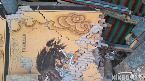 6月9日記者來到烏龍洞景區(qū)進(jìn)行采訪,在景區(qū)大門外立著一張警示牌,上面寫著(前方危險)四個大字,順著牌子望去一片塌陷區(qū)呈現(xiàn)在記者眼前,山溝砌起的圍壩有將近20米長已經(jīng)陷進(jìn),出現(xiàn)一個大大的豁口,用于裝飾的欄桿和石板都不見了蹤影,景區(qū)外面的圍墻,墻皮出現(xiàn)大面積脫了,大大小小的裂縫隨處可見,進(jìn)入景區(qū)記者看到,大殿,鼓樓,禪房等建筑都出現(xiàn)了裂縫,特別是靠近西面的建筑開裂尤其嚴(yán)重,在禪房的后墻有三條從上到下的裂縫有五六公分寬,整個景區(qū)的地面由于地基下沉變得凹凸不平。