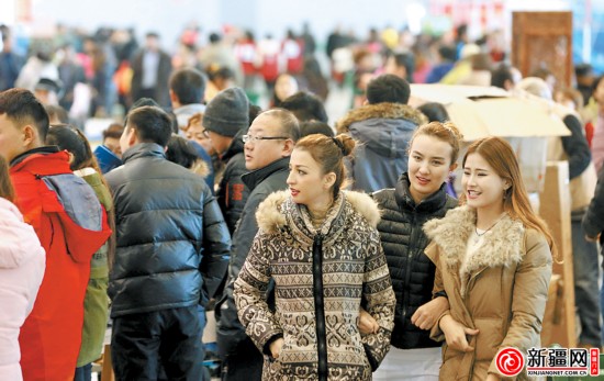 11月29日,在中國西部冰雪旅游節(jié)暨第九屆中國新疆冬季旅游產(chǎn)業(yè)交易博覽會上,大批觀眾前來觀展。陳星宇 攝