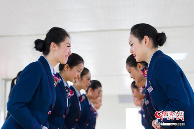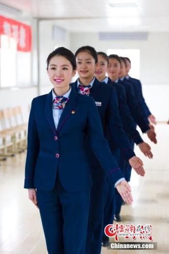 2014年11月19日,貴(貴陽)廣(廣州)高鐵開通在即,貴陽客運段動車組列車乘務員正在進行禮儀訓練。貴陽客運段做好開行動車組列車準備工作,貴廣高鐵“準動姐”們抓緊進行動車乘務員服務禮儀、雙語播音等業(yè)務知識培訓。圖為行問候禮。 賀俊怡 攝