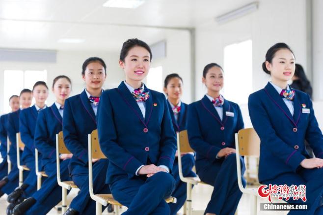 2014年11月19日,貴(貴陽)廣(廣州)高鐵開通在即,貴陽客運段動車組列車乘務員正在進行禮儀訓練。貴陽客運段做好開行動車組列車準備工作,貴廣高鐵“準動姐”們抓緊進行動車乘務員服務禮儀、雙語播音等業(yè)務知識培訓。圖為坐姿訓練。 賀俊怡 攝