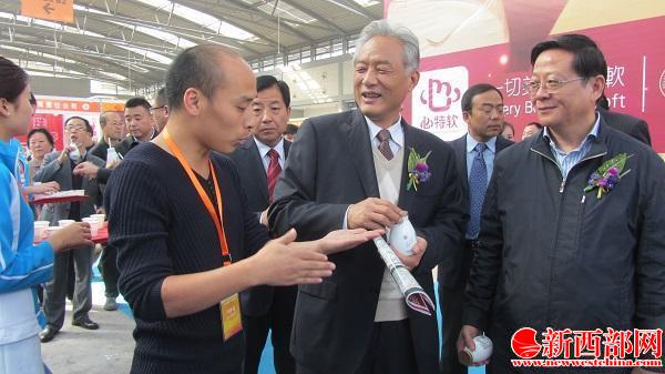 領(lǐng)導(dǎo)和嘉賓們參觀寧夏回族自治區(qū)“夏進(jìn)”乳業(yè)展位。新西部網(wǎng) 王順利攝