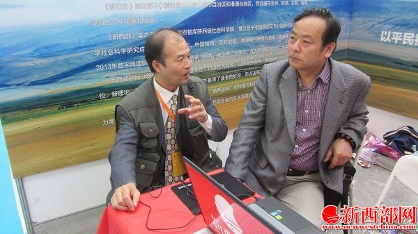 新西部雜志社執(zhí)行社長(zhǎng)沙建平(右)聽取新西部網(wǎng)主任王順利匯報(bào)直播工作。