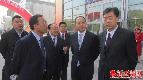 【10:33】陜西省質(zhì)量強(qiáng)省工作推進(jìn)委員會(huì)副主任、陜西省質(zhì)量技術(shù)監(jiān)督局黨組書記、局長(zhǎng)仵西居(右二),陜西省第十一屆人大常委會(huì)原秘書長(zhǎng)、陜西省政府參事、國(guó)際應(yīng)急管理學(xué)會(huì)中國(guó)委員會(huì)副主席桂維民(右一)等領(lǐng)導(dǎo)到新西部雜志社展位前閱讀雜志。新西部網(wǎng) 王順利攝