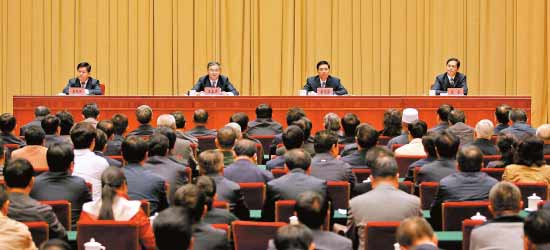 14日,云南省委召開全省領(lǐng)導(dǎo)干部會(huì)議,宣布中共中央關(guān)于云南省黨政主要負(fù)責(zé)同志職務(wù)調(diào)整的決定。 記者 楊崢 攝