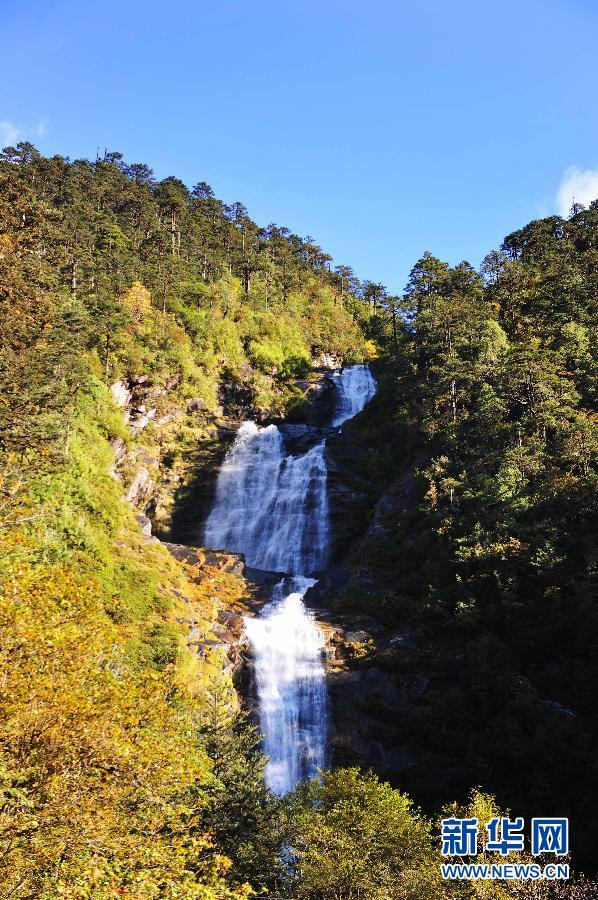 這是10月6日拍攝的墨脫縣境內(nèi)的一處瀑布。“墨脫”藏語意為“隱秘的蓮花”,位于西藏自治區(qū)東南部林芝地區(qū),地處雅魯藏布江下游,喜馬拉雅山脈東端南麓。這里環(huán)境優(yōu)美、雨量充沛、生態(tài)保存完好,也是西藏高原海拔最低的地方。每年十月是墨脫一年之中最美季節(jié),其獨特的景致吸引著大量的游客。新華社記者文濤攝