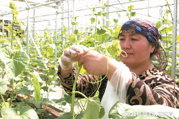 6月24日,哈密市科技局科技特派員依米提·牙合甫來到哈密市花園鄉(xiāng)卡日塔勒村的種植基地查看130多個品種的哈密瓜長勢情況。在一片瓜地中每隔幾米就會出現(xiàn)一個不同品種的哈密瓜,而依米提則根據(jù)生長情況指導農(nóng)民下一階段的施肥、管理、病蟲害防治等工作。
