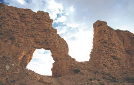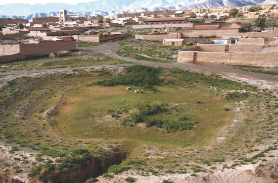 龜城南高北低,在北城角設(shè)一大池,名叫“甘露池”,以補(bǔ)地脈,實(shí)際上也是龜城的排水系統(tǒng)。如今甘露池已經(jīng)干涸,一圈一圈的水印讓我想起了干耳朵形狀的羅布泊。