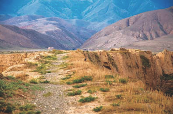 沿著窄窄的坡道登上城墻,祁連山余脈的壽鹿山看得更加清晰了。這里是河西走廊的門戶,有古老的驛道一直通向涼州。