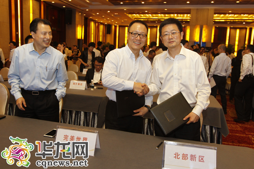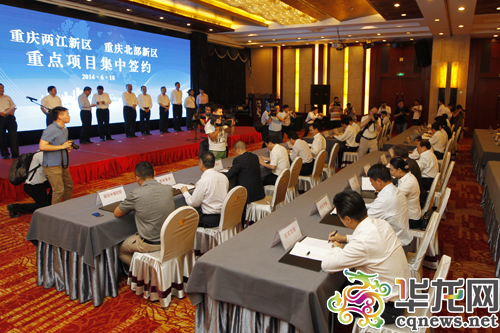 今天中午,兩江新區(qū)舉行重慶兩江新區(qū)、重慶北部新區(qū)重點項目集中簽約活動。 首席記者 李靖 攝
