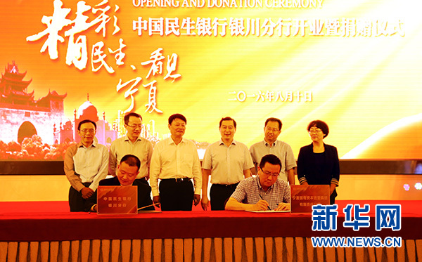 開業(yè)儀式上,民生銀行銀川分行還向寧夏固原市涇源縣大灣鄉(xiāng)楊嶺村、西吉縣震湖鄉(xiāng)張撇村的兩個村級互助擔?;痦椖糠謩e捐贈50萬元,向寧夏青基會“希望課桌、快樂體育園地”項目捐贈100萬元。