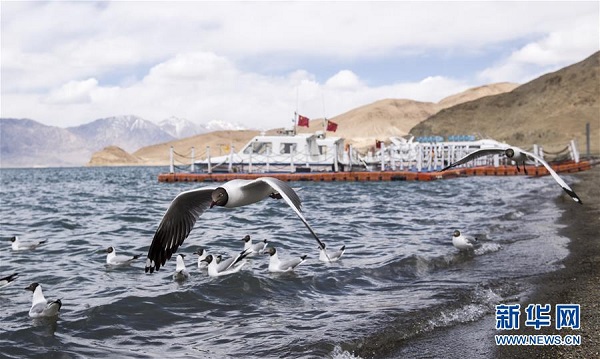 飛翔在班公湖畔的紅嘴鷗