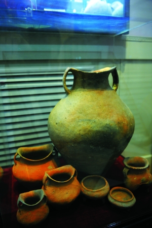 寺洼山出土的灰陶紅陶彩陶罐。灰陶和紅陶是新石器時(shí)代人們?nèi)沼米疃嗟奶掌?,質(zhì)地較疏松、粗糙,彩陶已臻精美。