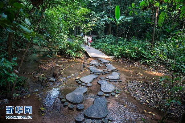 云南省西雙版納傣族自治州勐臘縣“望天樹”熱帶雨林主題公園景區(qū)內(nèi)森林茂密,郁郁蔥蔥,吸引了許多游客來此旅游。望天樹是西雙版納熱帶雨林中最高大的喬木。這種樹樹干筆直,高出一般樹叢20多米,形成森林上面還有森林的奇觀。