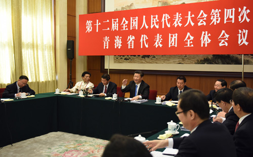 青海代表團(tuán)審議中,省長(zhǎng)郝鵬代表介紹了青海近年環(huán)境生態(tài)發(fā)展情況??倳涥P(guān)心地詢問青海保護(hù)生態(tài)環(huán)境、推進(jìn)中國(guó)三江源國(guó)家公園體制試點(diǎn)的情況。習(xí)近平強(qiáng)調(diào),一定要生態(tài)保護(hù)優(yōu)先,扎扎實(shí)實(shí)推進(jìn)生態(tài)環(huán)境保護(hù),像保護(hù)眼睛一樣保護(hù)生態(tài)環(huán)境,像對(duì)待生命一樣對(duì)待生態(tài)環(huán)境,推動(dòng)形成綠色發(fā)展方式和生活方式,保護(hù)好三江源,保護(hù)好“中華水塔”,確?!耙唤逅驏|流”。(人民日?qǐng)?bào)全媒體平臺(tái)記者倪光輝)