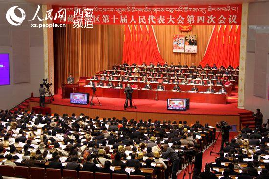 27日上午,西藏十屆人大四次會議在拉薩開幕,圖為會議現(xiàn)場。吳雨仁攝
