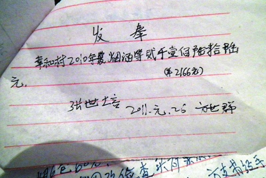 原村會計(jì)兼出納黃聲貴拿出一大疊村上的收支賬務(wù)對記者說:這些都是能見光的,還有許多收支,村干部并沒經(jīng)過我。報(bào)銷的單據(jù)幾乎都是白條,有上百張,買煙酒、吃飯、招待居多。村上一開會,大家習(xí)慣把自己的煙揣到兜里,然后抽村上買的,開完會免不了到飯館吃飯,喝的酒經(jīng)常是開會前就買好的,喝完了向飯館繼續(xù)要,反正這類消費(fèi)村上都能報(bào)賬。