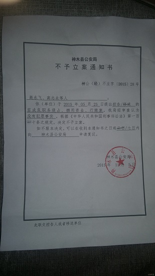 針對(duì)村民的報(bào)案,神木縣公安局經(jīng)偵大隊(duì)當(dāng)時(shí)予以受理,經(jīng)過(guò)數(shù)月的偵查,認(rèn)為該案由于時(shí)間跨度過(guò)長(zhǎng),很多證據(jù)缺失或者不足,報(bào)案材料與事實(shí)不符,11月5日,警方作出決定:不予立案。辦案民警介紹,該案警方非常重視,也經(jīng)過(guò)了細(xì)致深入的偵查,辦案程序均是嚴(yán)格依照法律程序進(jìn)行的,沒(méi)有任何問(wèn)題。而對(duì)警方的調(diào)查結(jié)果和決定,村民確認(rèn)為其中肯定有問(wèn)題。