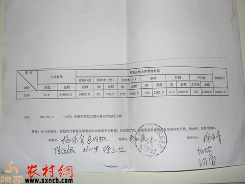 在該協(xié)議備注一欄這樣寫道:10.8畝地塊,經(jīng)組民代表商議要求按水田標(biāo)準(zhǔn)予以補(bǔ)償。協(xié)議簽訂后,在地面進(jìn)行建設(shè)時(shí)發(fā)生的任何矛盾,均由村、組自行解決。簽字方:安康市高新區(qū)統(tǒng)征中心徐長青、胡奎。黨營村原村委會(huì)主任黨小虎,組委會(huì)楊樂余、包成林、陳遠(yuǎn)根、劉從里、徐遠(yuǎn)女。