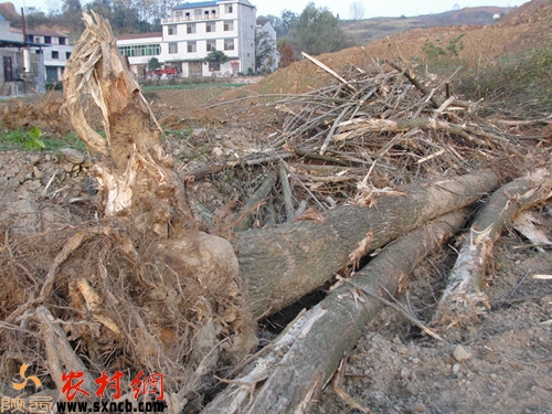 今年11月15日,村干部找到他商討征地樹木和地表附著物補(bǔ)償一事,村干部讓他拿出這幾年投資清單和賠付的具體數(shù)字。16日一大早,他就把這幾年的投資清單送到村支書黨繼才家,在返回的過程中,就看到有一二百不認(rèn)識(shí)的人開著機(jī)器、拿著伐木工具在我的樹林里亂砍亂伐我擋也擋不住,我就報(bào)了警,當(dāng)?shù)嘏沙鏊鶃砣酥皇钦f,讓我配合工程項(xiàng)目。第二天又來了幾百人,竟連伐的樹全部拉走了,比強(qiáng)盜還惡。