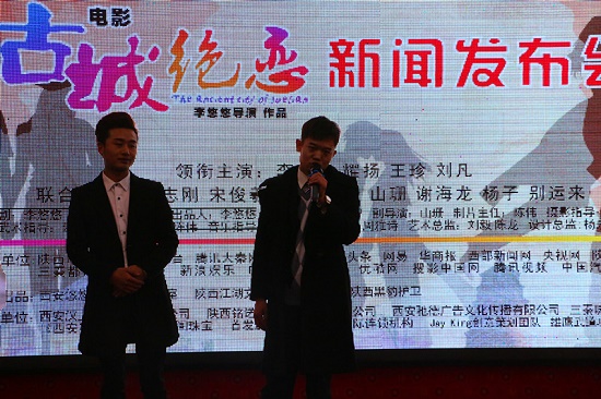2015年11月30日,由西安悠悠影視傳媒工作室、陜西江湖文化娛樂(lè)有限公司、陜西黑豹護(hù)衛(wèi)聯(lián)合出品的電影《古城絕戀》啟動(dòng)儀式新聞發(fā)布會(huì)在西安雁翔路三秦味道秦文化餐廳隆重舉行。出品人、總導(dǎo)演李悠悠,制片人徐志剛、電影主創(chuàng)、主演男一李悠悠,女一嫩模網(wǎng)紅王珍,著名歌手耀揚(yáng)出演男二,實(shí)力派偶像女演員劉凡出演女二號(hào)以及陜籍明星歌唱家秦歌第一人十三狼、黑撒樂(lè)隊(duì)、歌手孟剛、陳漢、郭少杰、謝震東、嘉旗、王瀧銳、秦風(fēng)藝術(shù)團(tuán)團(tuán)長(zhǎng)孫麗、陜西全媒體朋友出席了本次新聞發(fā)布會(huì)。
