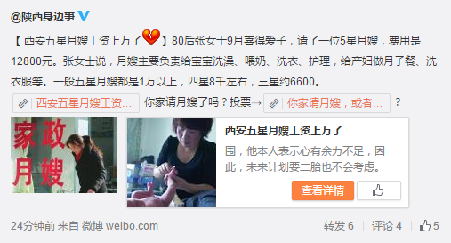 陜西身邊事【西安五星月嫂工資上萬】