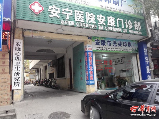 位于安康市漢濱區(qū)東大街的安寧醫(yī)院安康門診部,安康心理衛(wèi)生研究所是這家醫(yī)院門診的另一塊牌匾
