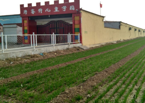 傍著綠油油的青苗、向西僅幾步之遙就是基本農(nóng)田保護(hù)牌,一座比較扎眼的違建佇立在那里——博睿特兒童學(xué)園,往東走約100米又是一座基本農(nóng)田保護(hù)牌,它竟然建設(shè)于兩座基本農(nóng)田保護(hù)牌中間。它就是河北省肥鄉(xiāng)縣大名鼎鼎的“違法”幼兒園,它處于東張寨于西張寨村的中間路南,屬于肥鄉(xiāng)鎮(zhèn)政府管轄。據(jù)了解,博睿特兒童學(xué)園在基本農(nóng)田里已經(jīng)有兩年多時(shí)間。