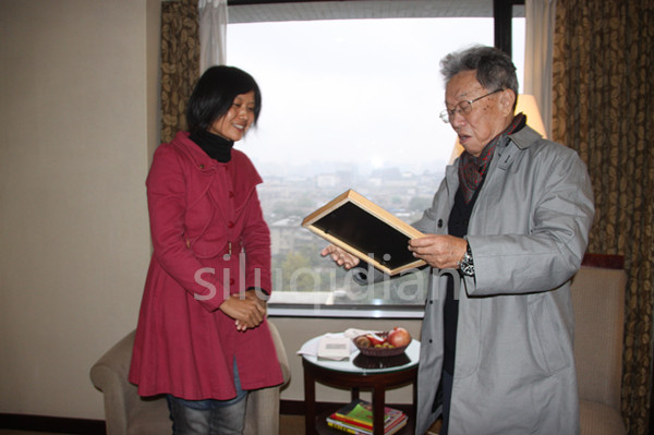 王蒙抵達(dá)西安的當(dāng)天,天空就時(shí)斷時(shí)續(xù)地飄灑著蒙蒙細(xì)雨,天氣更冷了,空氣卻比往常清爽了許多。夜里,窗外的雨聲淅淅瀝瀝,小雨點(diǎn)輕輕敲打在窗戶玻璃上發(fā)出細(xì)碎的聲響,一貫睡眠很實(shí)的我那一夜竟輾轉(zhuǎn)反側(cè),睡的并不好。次日,雖略覺疲憊但晨曦未顯就已經(jīng)起床開始一天的忙碌了。