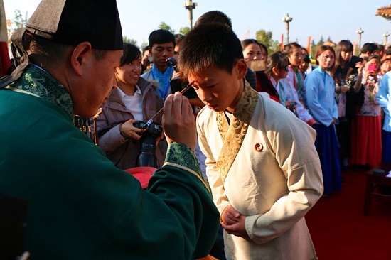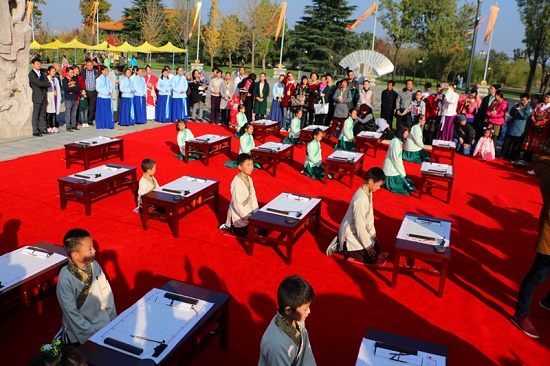 端正衣冠、朱砂啟智、啟蒙描紅、禮敬師長(zhǎng)、吟誦經(jīng)典……11月1日,在西安市周至縣道文化發(fā)源地樓觀臺(tái)景區(qū)內(nèi),西安和謙經(jīng)典學(xué)堂為17名學(xué)生舉行了傳統(tǒng)意義上的開筆禮。