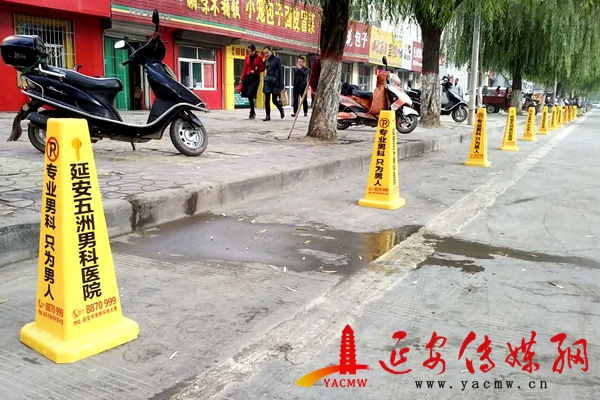 記者來到路障擺放地詢問停車收費管理人員,他說:“放路障的地方不能停車,這些路障都是延安五洲男科醫(yī)院給的?!币晃桓浇慕?jīng)營者說:“延安近年來對環(huán)境衛(wèi)生,市容市貌非常重視,但是,路邊擺放廣告路障就沒有人管,希望相關部門對這些路障情況也關注一下”。博愛醫(yī)院門口一位過路司機李先生說:“對于道路上擺放隔離錐筒很不滿意,延安的路本來就窄,在輔道上行走,一邊停車,一邊擺放路障,會車的時候很容易造成交通堵塞,也很容易出現(xiàn)交通事故,而且大街小巷的隔離錐筒,遇到急事臨時停車也很不方便。延安現(xiàn)在不管走哪里,即便沒劃分停車線的,擺著隔離錐筒也能成為一個停車地,各種亂收費,有些上邊還打著廣告,真的覺得影響不太好”。