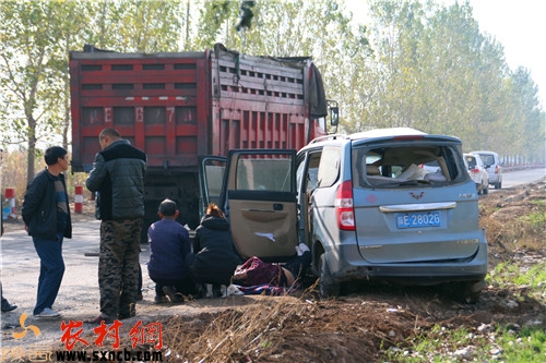 據(jù)村口目擊者稱,五菱宏光車輛上一家五口當(dāng)時(shí)正開(kāi)車由東向西行駛,準(zhǔn)備去西安,在行駛至東環(huán)路程趙村和岳家莊十字時(shí)被一輛由北向南的拉煤車攔腰撞上。由于拉煤車車速過(guò)快,來(lái)不及剎車,小車被拉煤車“推”著向前行駛了七八米,最后在路邊田地里才停下來(lái)。拉煤車主要撞擊的是小車的后面,前排司機(jī)和妻子均受傷,后排座位上司機(jī)的母親和外婆當(dāng)場(chǎng)死亡,現(xiàn)場(chǎng)慘不忍睹。